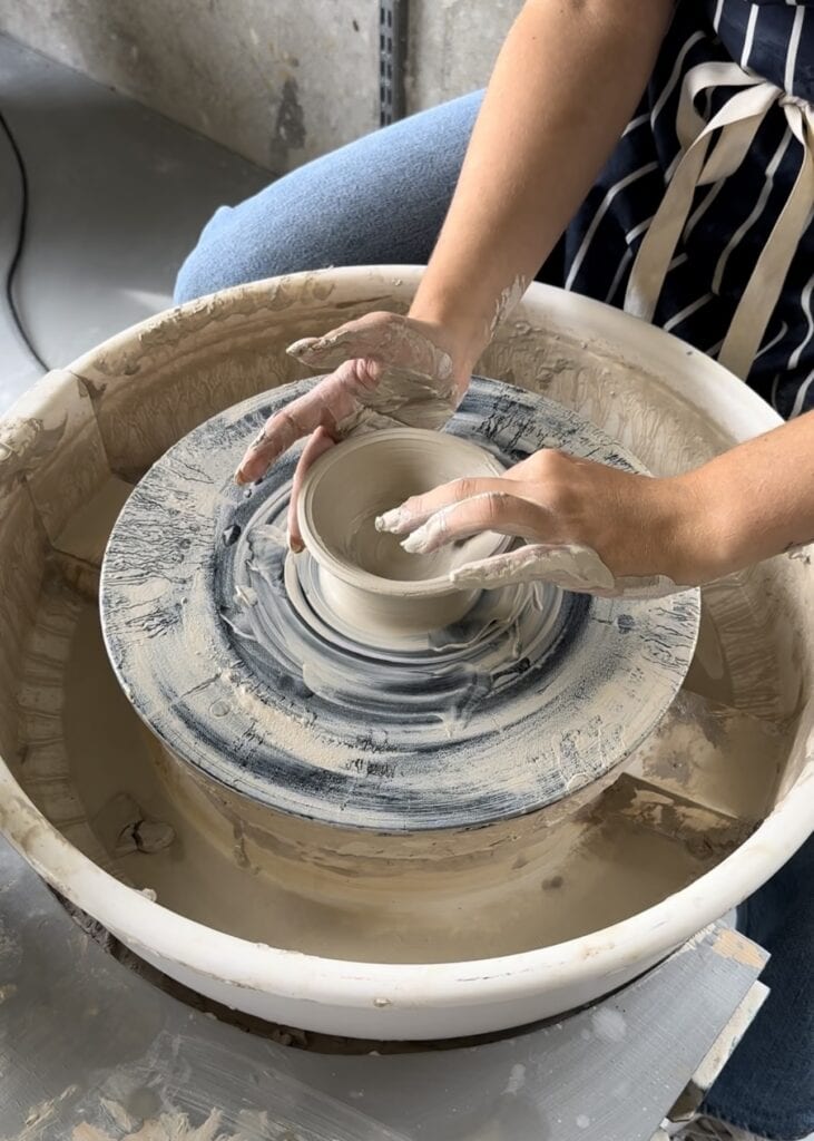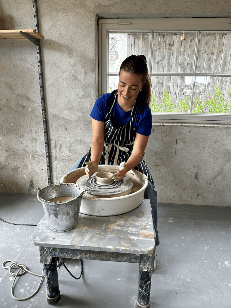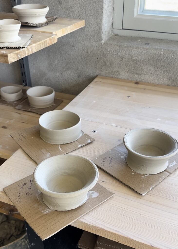 Klockan 14:00 var det dags för oss att prova på att dreja i deras fullt utrustade verkstad. Vi fick en klump lera och så var det bara att sätta igång. Vi har aldrig tidigare provat att dreja men det var verkligen jätteroligt. En så härlig aktivitet som passade perfekt när vädret inte var helt på topp.