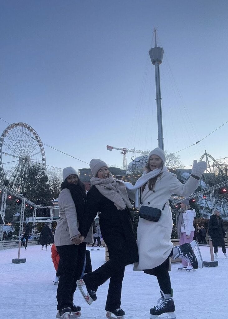 EN- I haven’t skated in a very long time, but it’s so fun! I was shocked myself at my skating skills????. We rode round and round, sang along to the Christmas music that was played and enjoyed mulled wine in the Blossa bar which was next to the skating rink.
