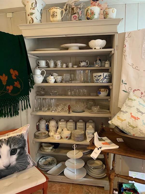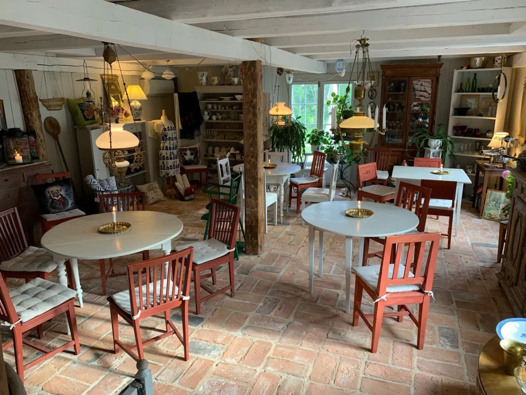 Inne i kaféet kan du förutom fikat handla lite delikatesser och fina antikviteter och lite möbler. Allt hemtrevligt sammansatt inne i rummen där du fikar.