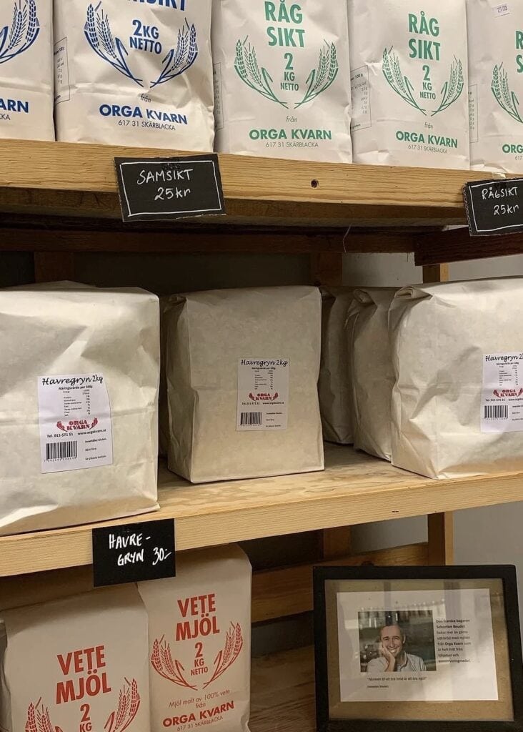 Fick med mig massor av goda grönsaker och en påse mjölblandning som jag bakade två smarriga bröd av. Allt smakar så mycket mer och så mycket bättre när man köper det direkt från gården.