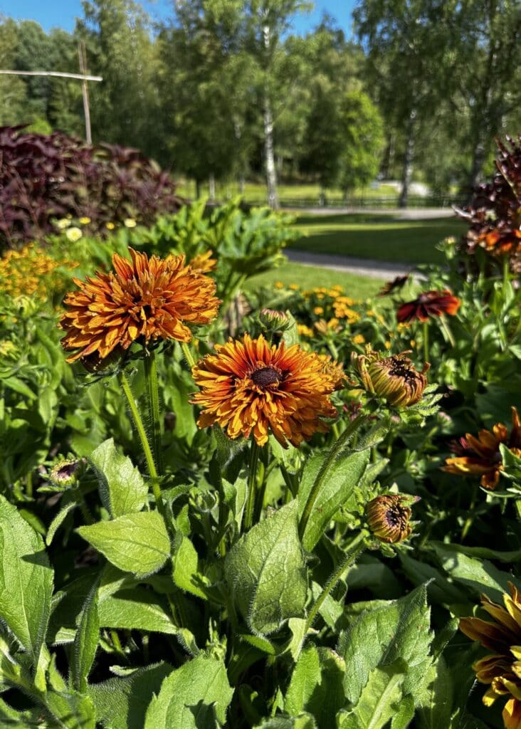 Trädgården vacker och prunkande. Man håller på att återskapa den forna trädgården.