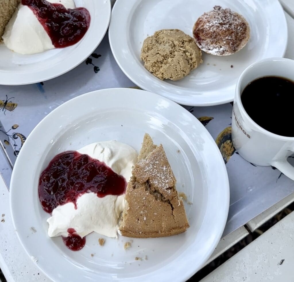 Vi började vårt besök på Mårbacka Café med att fika och testade då deras specialitet Mårbackakakan bakad på skrädmjöl. Selma Lagerlöf var förtjust i skrädmjölet och engagerade sig i dess etablering i både Sverige och Amerika.