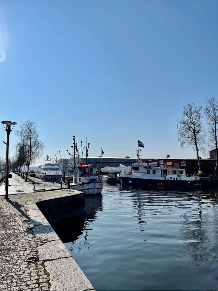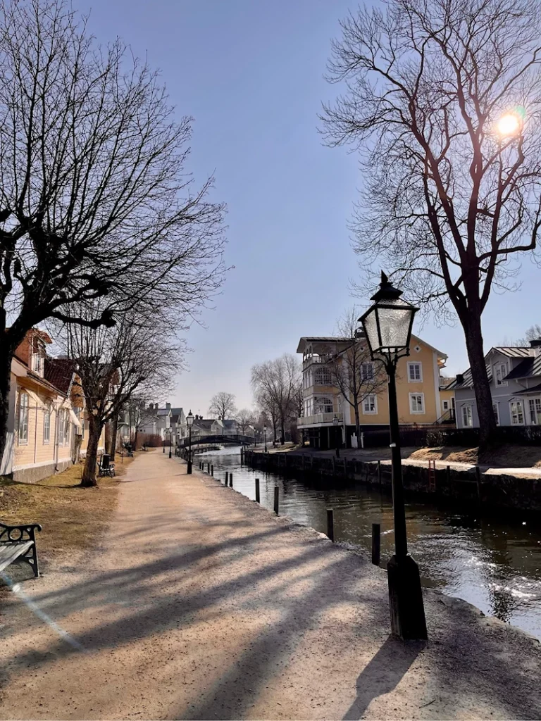 EN- We followed the Trosaån down to the harbour. In the summer it is full speed here with shops, restaurants and boating. But it was still at rest.