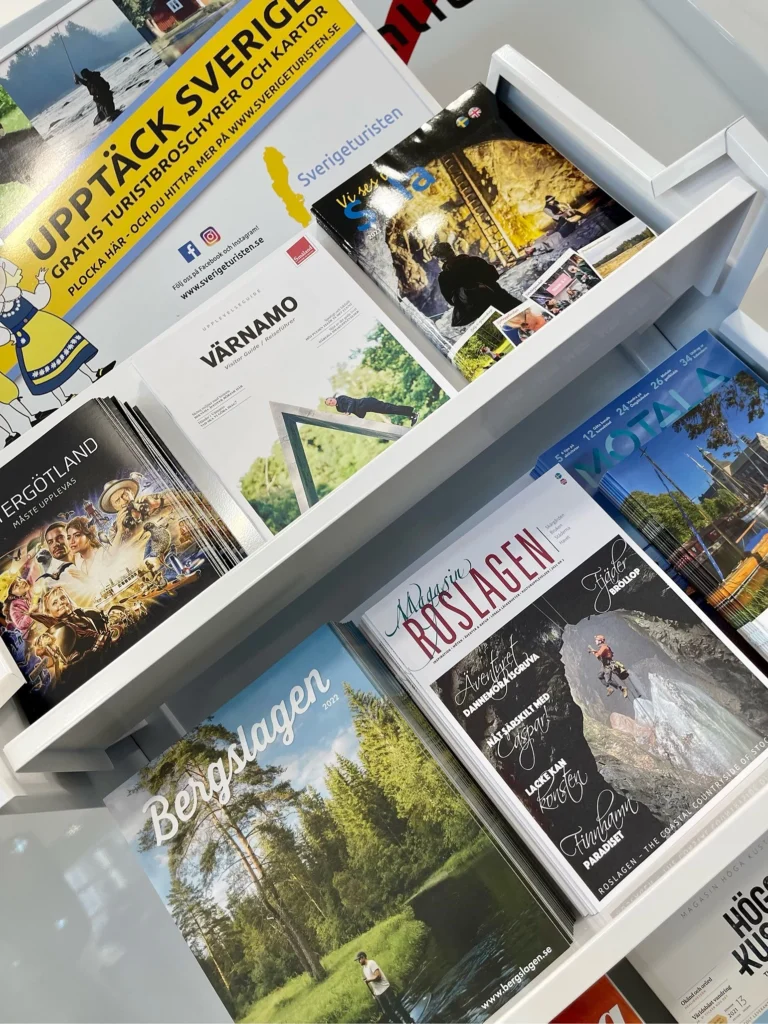 Turistbroschyrer och kartor beställer ni gratis på vår hemsida, sverigeturisten.se